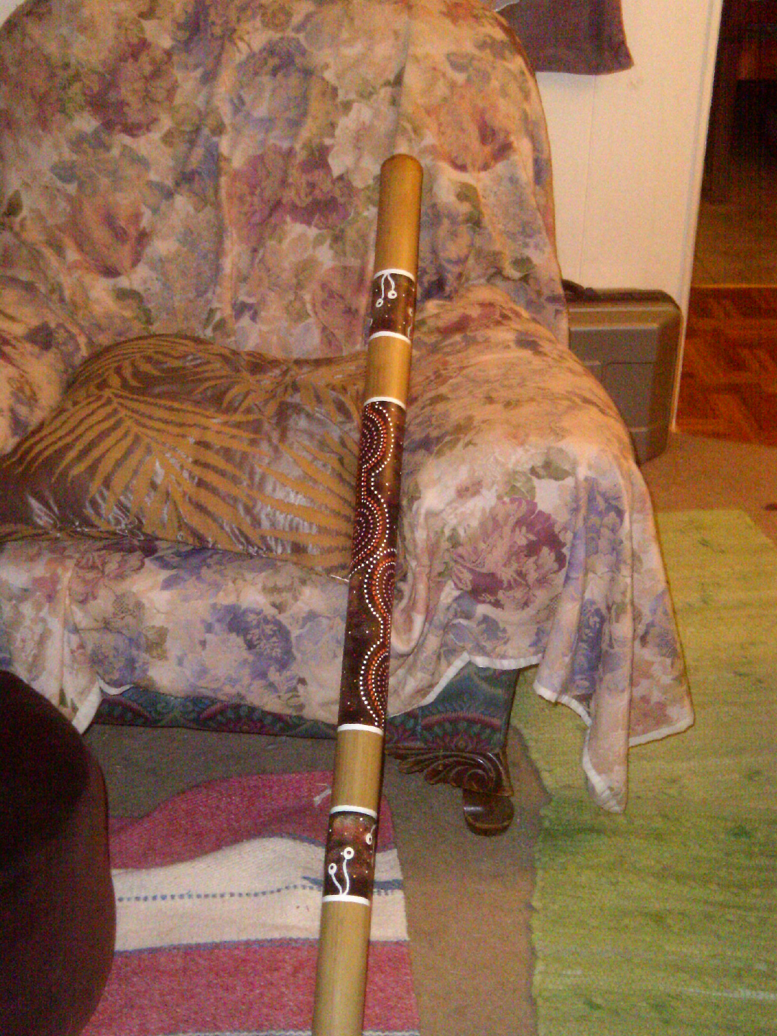 Effortless. That was what it needed to be. That was what I needed to learn. With everything around me requiring such massive effort – to learn to play the didge was a shift of consciousness! And one that was starting to heal me. I am breathing deeper. I am laughing again. I feel a sense of accomplishment (badly needed, I’ve had a couple of demoralizing things happen lately). When I thought playing it was going to loosen my front teeth, Billy said that might make me an even better player if I lost them (the teeth!!), which did not amuse me.