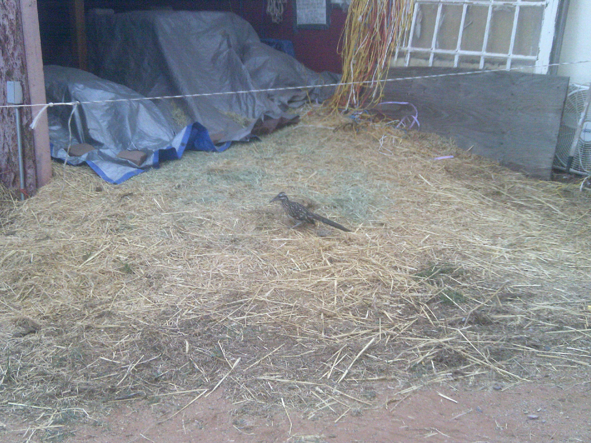 But we now have a group of young roadrunners at Dharmahorse. They are almost as tame as chooks and follow me around as they grab big beetles and (to my horror) chase young doves and my giant lizards about. I am glad they are here (the Universe provides) because roadrunners kill, eat and chase away rattlesnakes.