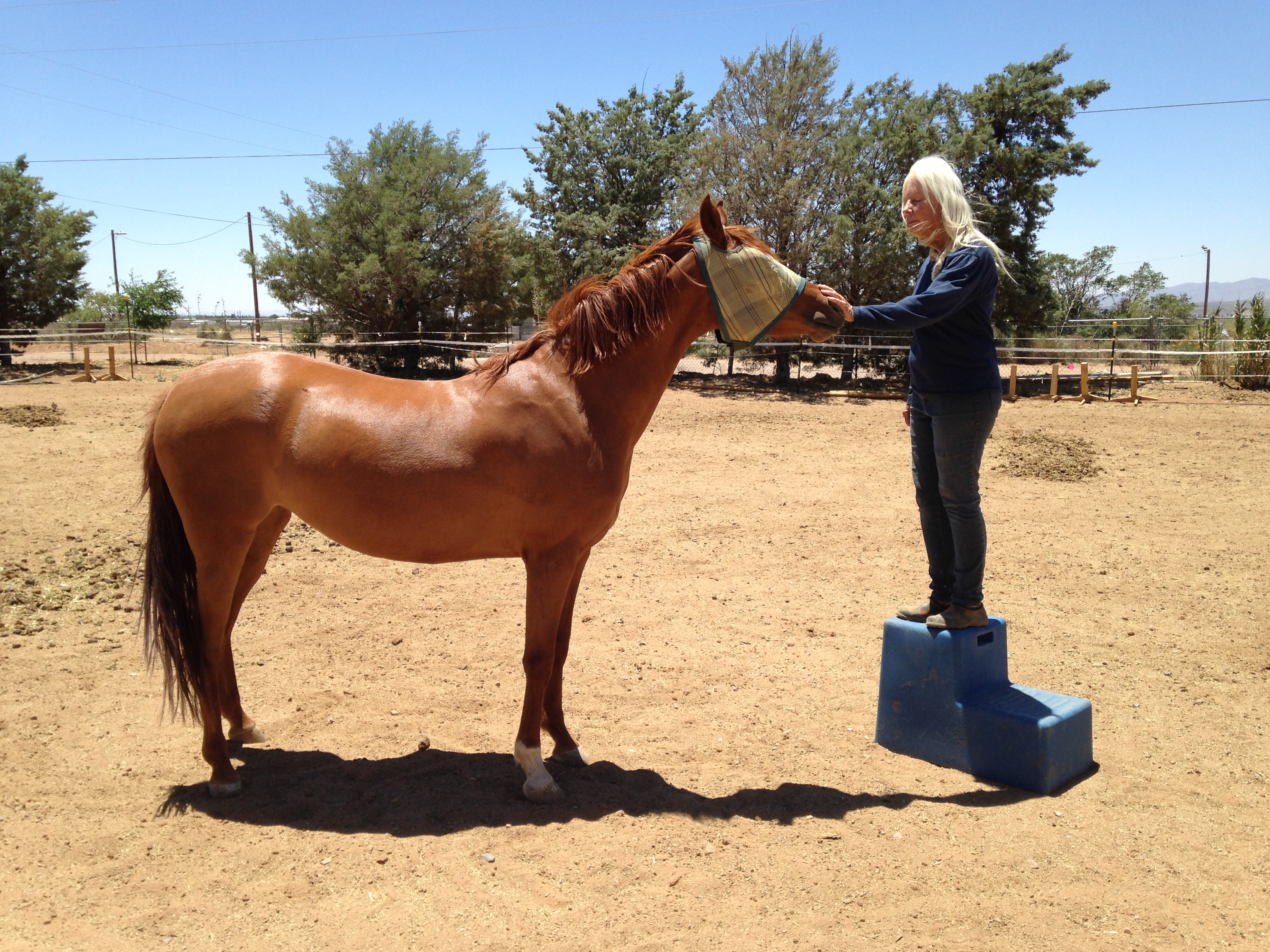 Last year, we had 30 people from an Air Base come out to do community service by rebuilding fences, stretching fences, moving a shelter, etc. A neighbor came over and told me that we had a “gold mine” here… we got others to do the work and got money from the Sanctuary. I told him that we get no funds for ourselves, ever. He said the weeds were our fault (we got the guys helping us to chop the weeds on his property), the dust was our fault (we live in the high desert and the wind blows…). He said we had a horse cemetery here – I told him the last four horses we euthanized and buried were 42 years old, 35 years old, 31 years old and 40 years old… he got quiet. We are a sanctuary for elderly horses. We give them comfort and love until their quality of life diminishes.