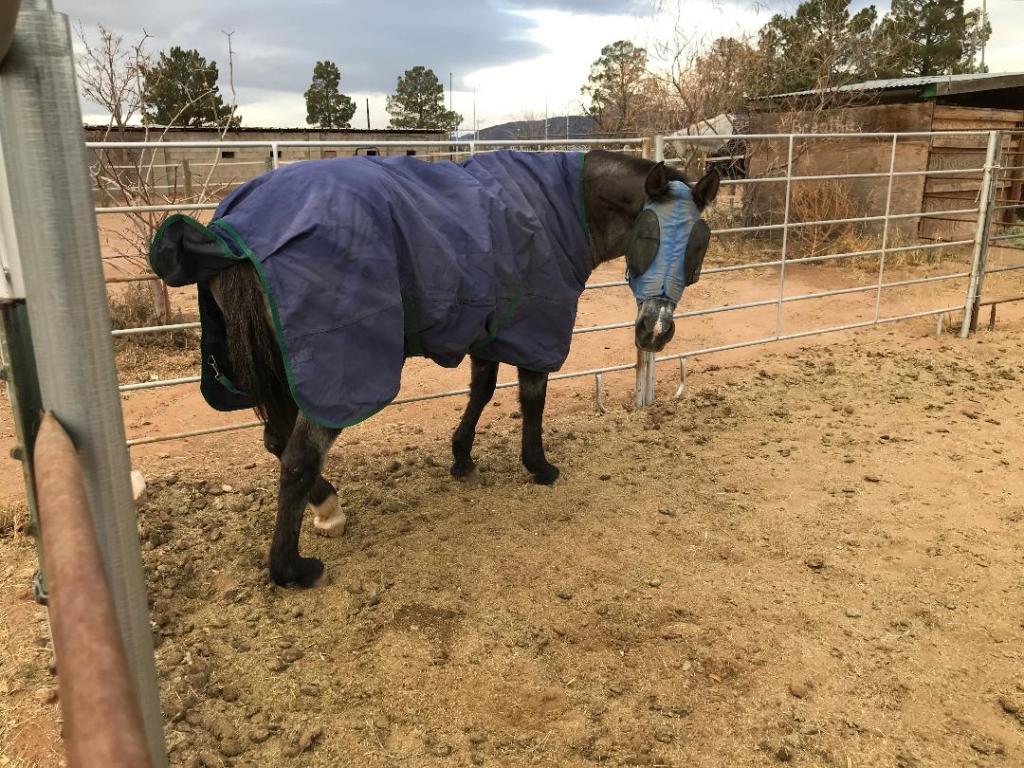 It started out cold this morning, in the 20’s in this high desert. We had winterized faucets and hoses and blanketed the most elderly (and truly “naked” horses who don’t grow winter coats, like Sage). I’m waiting for the sun to burn off the clouds before I pull their blankets.